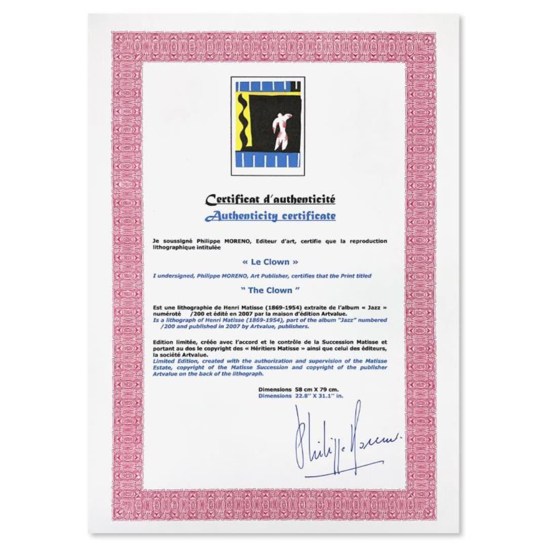Henri Matisse (1869-1954) "Le Clown" Limited Edition Lithograph on Paper
