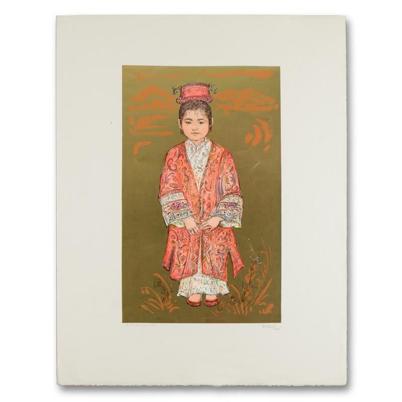 "Sun Ming Tsai of Beijing" is a limited edition lithograph on paper by Edna Hibel (1917-2014), numbered and Hand Signed by the artist. Includes Letter of Authenticity. Measures approx. 19.5" x 25.5" (with border), 11" x 18" (image). Please note: there is some creasing on the image. **