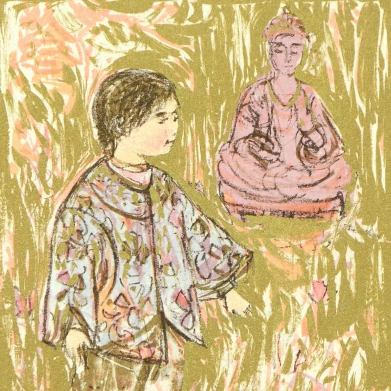 "Temple Visit" is a limited edition lithograph on paper with remarque by Edna Hibel (1917-2014), numbered and hand signed by the artist. Includes Certificate of Authenticity. Measures approx. 7" x 8" (border), 5.5" x 6.5" (image).