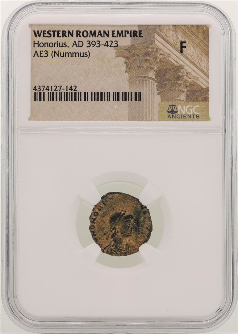 One Honorius 393-423 AD Ancient Western Roman Empire Coin NGC F. NGC Certified.