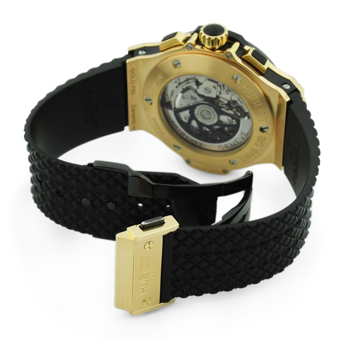 Hublot Big Bang Mens 44mm Black Fiber Dial 18KT Rose Gold & Ceramic Polished & Electronically Tested. Model: Big Bang 301.M. Case: 18KT Rose Gold,Ceramic and Titanium. Crystal: Sapphire. Bracelet: Rubber Strap. Adjustable Standard Clasp. Dial: Original Black Carbon Fiber. Movement: Automatic Winding Movement. Water Resistant: Yes. Case Size: 44mm. Condition: Pre Owned, Watch is free of all Scratches and Dents, Mint G-8.