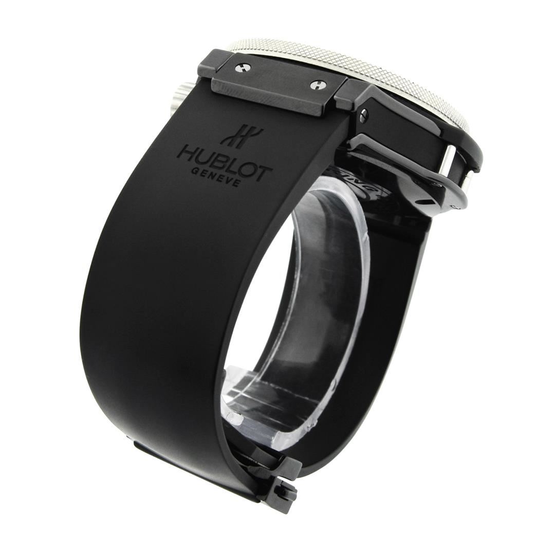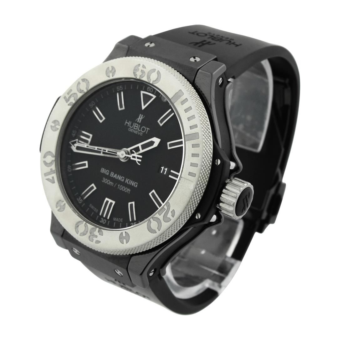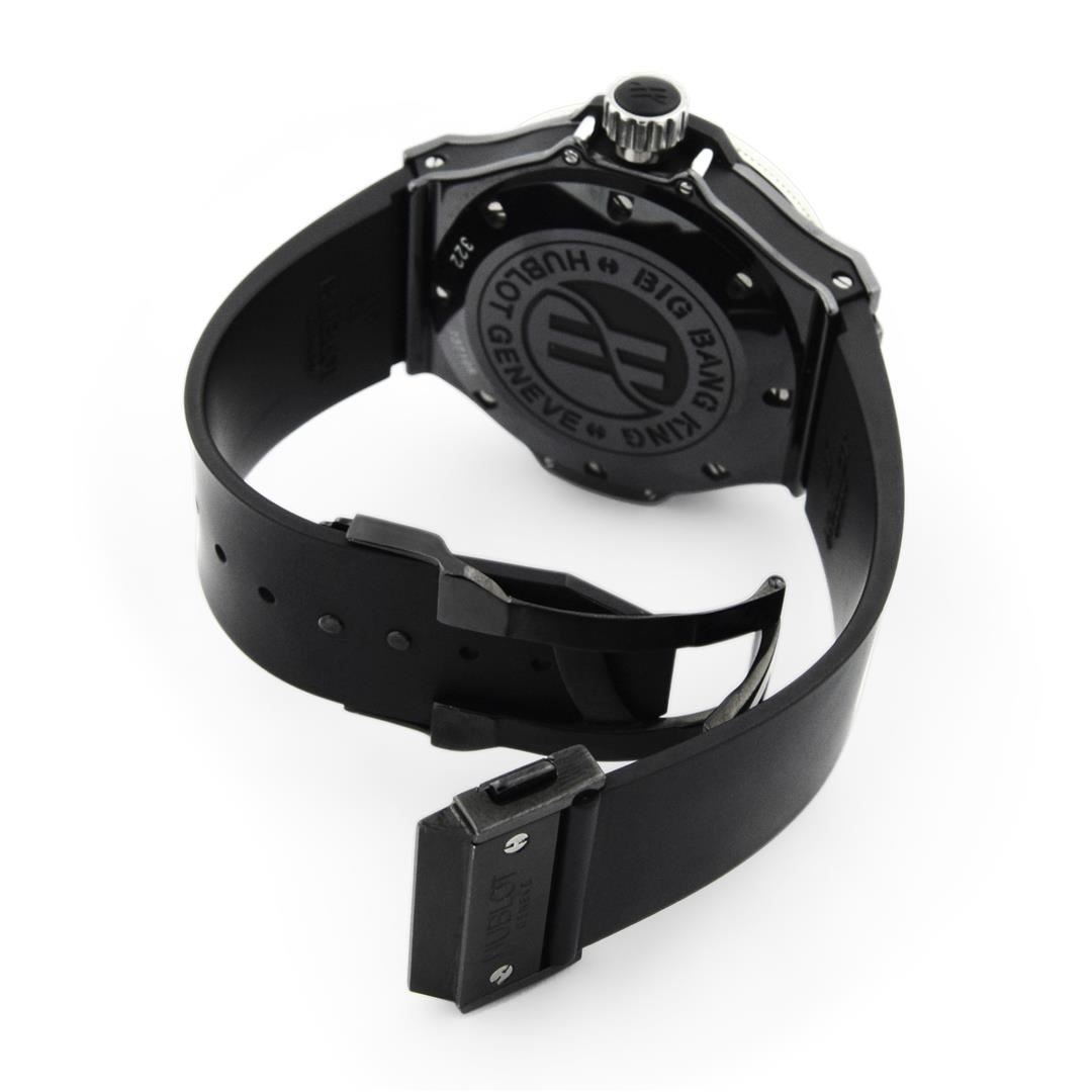 Hublot Big Bang King Mens 48mm Black Dial Ceramic & Titanium Polished & Electronically Tested. Model: Big Bang King 322. Case: Ceramic & Titanium. Crystal: Sapphire. Bracelet: Rubber Strap, Adjustable Standard Clasp. Dial: Original Black. Date Window: 3 O'clock Position date display. Movement: Automatic Winding Movement. Water Resistant: Yes. Case Size: 48mm. Condition: Pre Owned, Watch is free of all Scratches and Dents, Near Mint G-7.