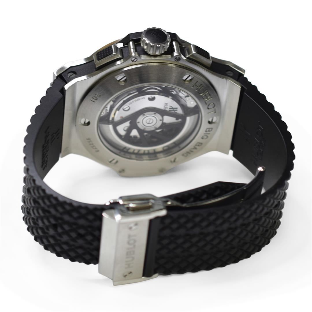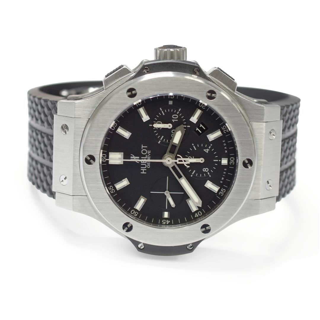 Hublot Big Bang Mens 44mm Black Dial Steel Polished & Electronically Tested. Model: Big Bang 301. Case: Stainless Steel. Crystal: Sapphire. Bracelet: Rubber Strap. Dial: Original Black. Date Window: between 4 and 5 O'clock Position date display. Movement: Automatic Winding Movement. Water Resistant: Yes. Case Size: 44mm. Condition: Pre Owned, With Minor Scratches, Extra Fine G-6.
