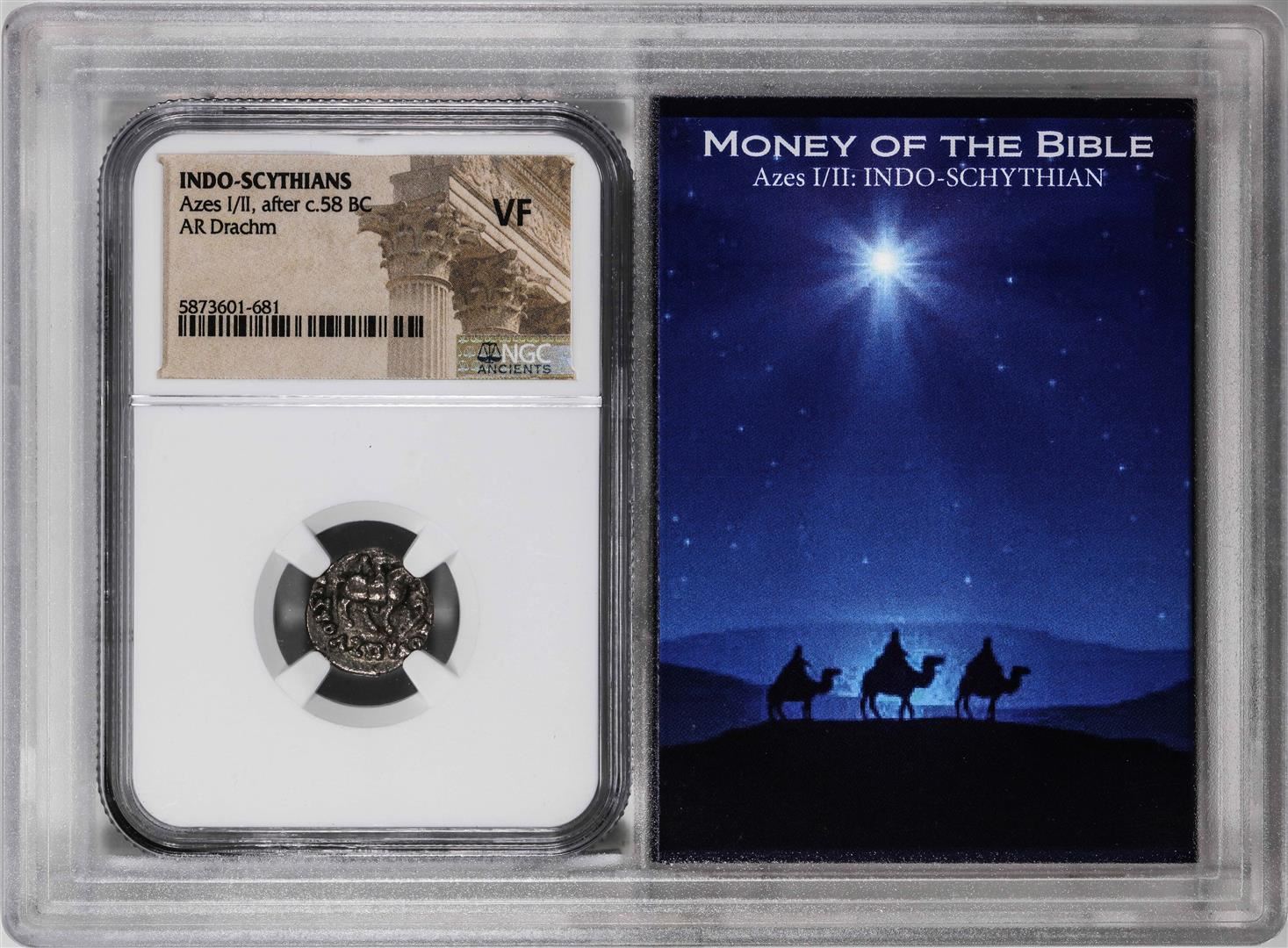 Indo-Scythians Azes I/II, After c.58 BC AR Drachm Ancient Coin NGC VF Story Box