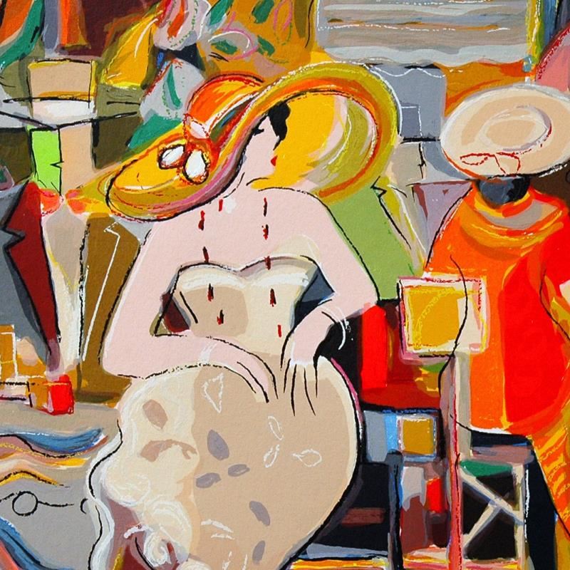 "Elite Boulevard" is a limited edition serigraph on paper by Isaac Maimon, numbered and hand signed by the artist. Includes Letter of Authenticity. Measures approx. 20.5" x 16" (border), 17" x 13" (image).