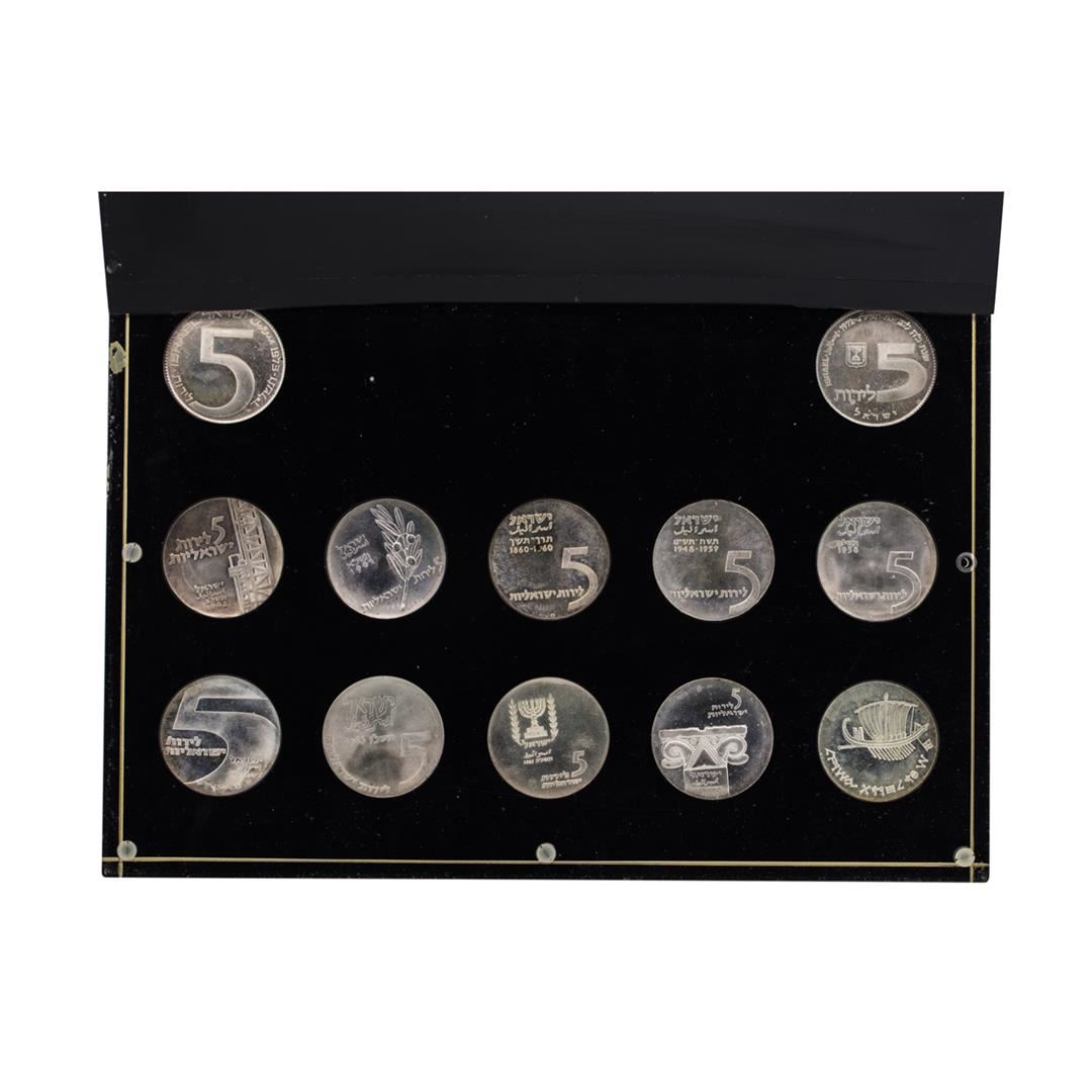 One Israel Silver 5 Lirot Commemorative Coin Set.