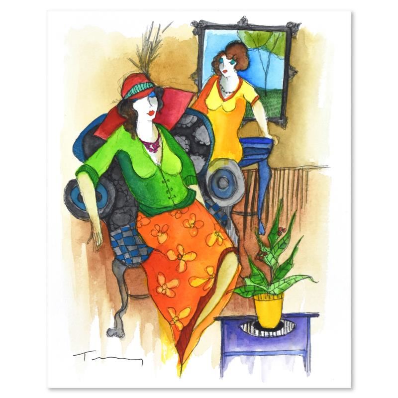 This is an original mixed media watercolor on paper by Itzchak Tarkay (1935-2012), hand signed by the artist. Includes Certificate of Authenticity. Measures approx. 8" x 10" (image).