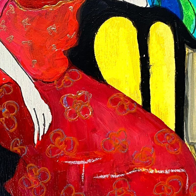 "Tranquility" is a one-of-a-kind mixed media over paint on wood by Itzchak Tarkay (1935-2012), hand signed by the artist. Includes Letter of Authenticity. Measures approx. 9" x 11.5" (image).