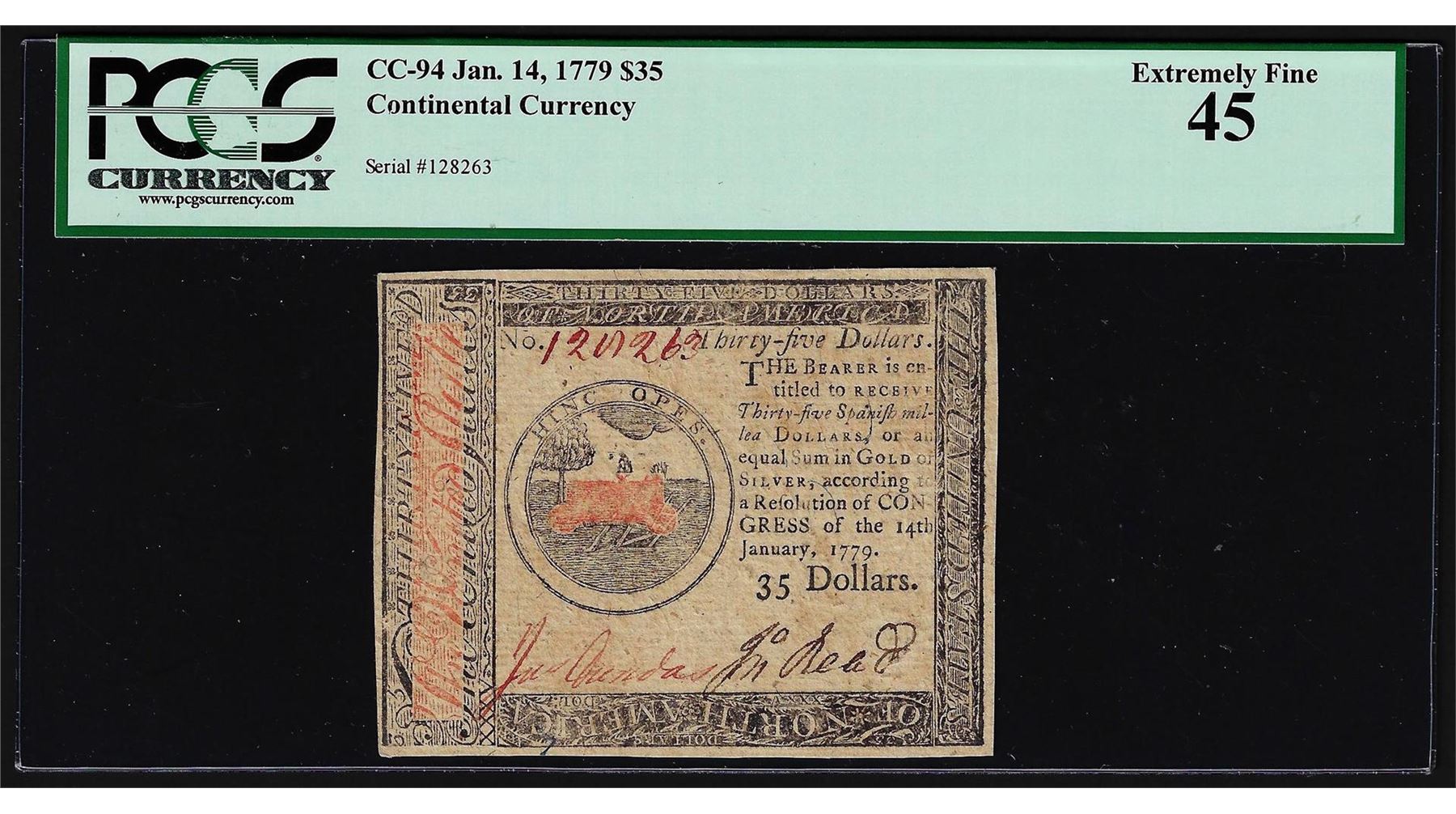 January 14, 1779 $35 Continental Currency Note PCGS XF45