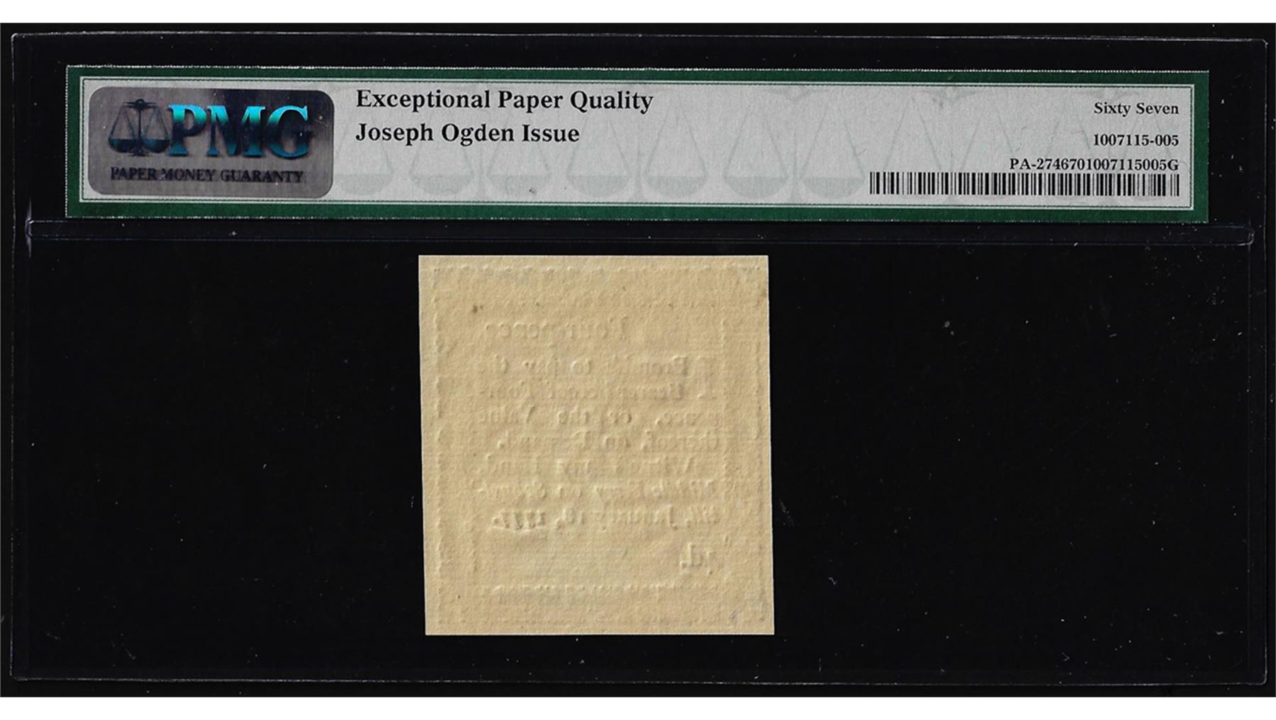 One January 18, 1777 Pennsylvania 4 Pence Colonial Currency Note PMG Superb Gem Unc. 67EPQ. PMG Certified.