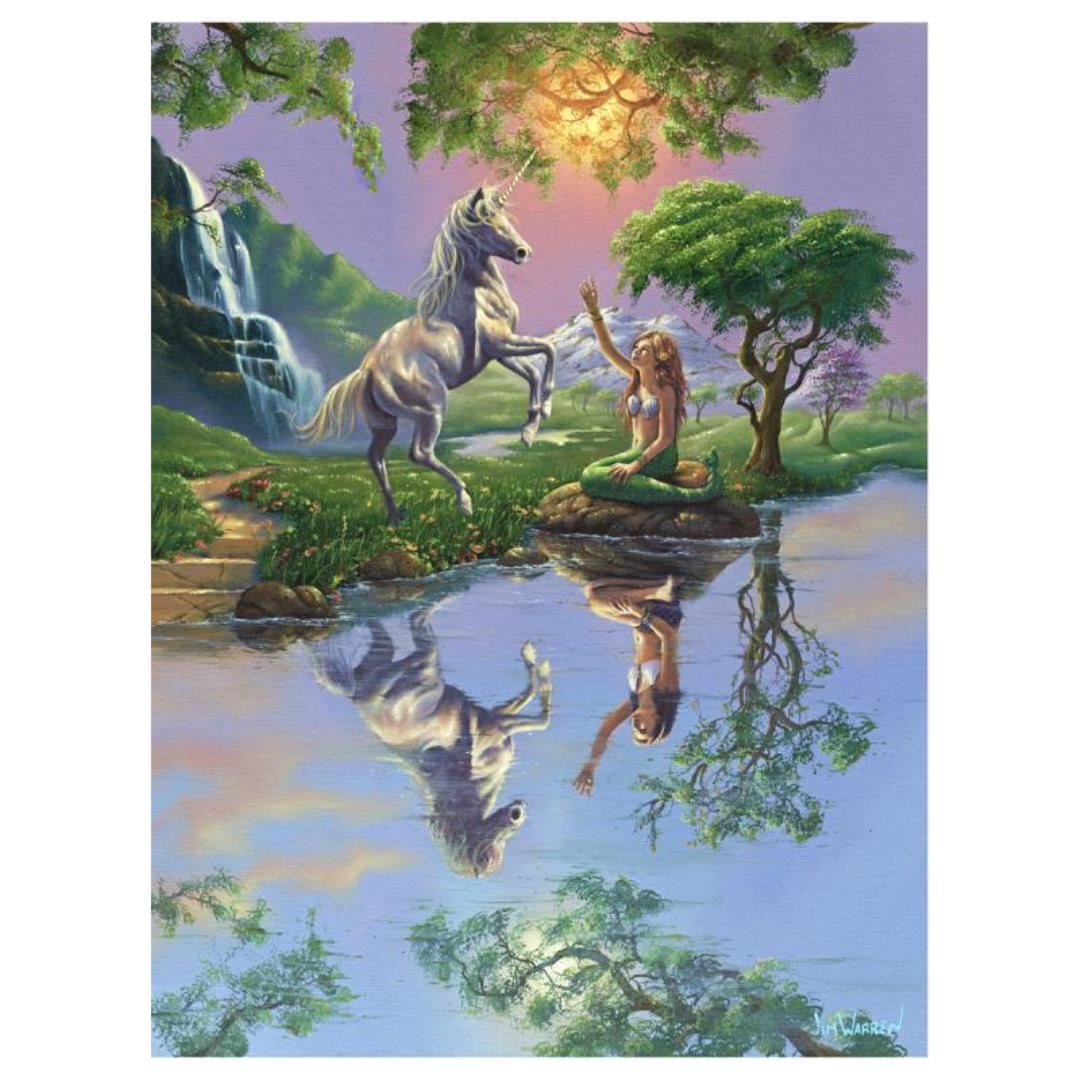 "Mermaid Reflections" is an AP numbered, artist embellished limited edition giclee on canvas by Jim Warren. The piece is hand signed and accompanied by a certificate of authenticity. Measures approximately 24" x 18" (image). This item requires special handling and may have a longer than usual turnaround.