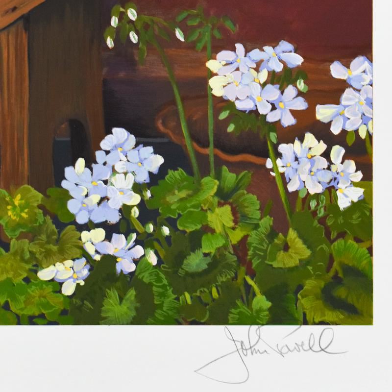 "Blue Window" is a limited edition serigraph on paper by John Powell, numbered and hand signed by the artist. Includes Letter of Authenticity. Measures approx. 25" x 29.5" (border), 20" x 24" (image).