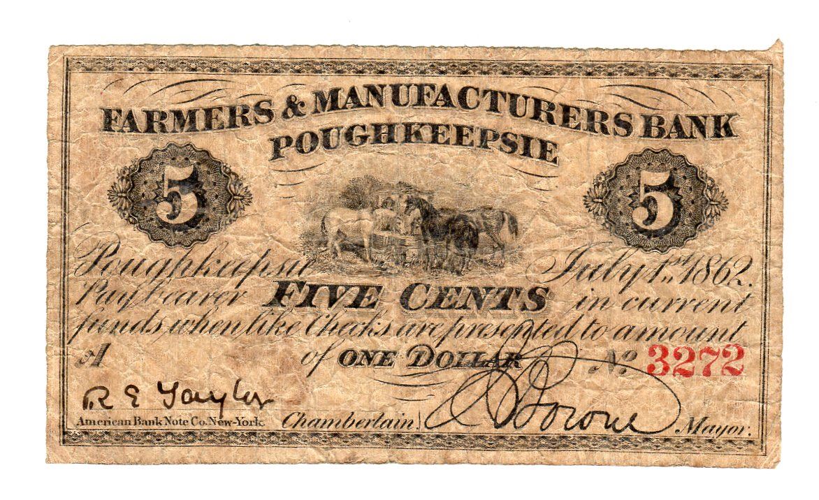 One July 1, 1862 5 Cents Farmers & Manufactures Bank Fractional Note.