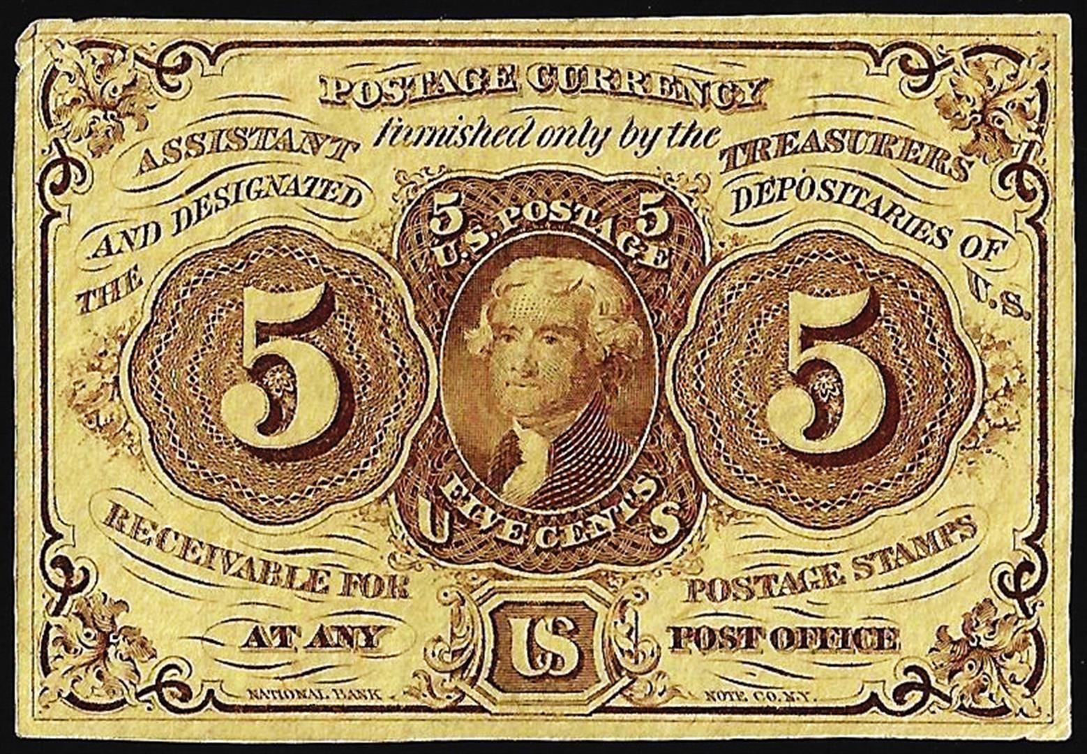 One July 17, 1862 First Issue Five Cents Fractional Currency Note.