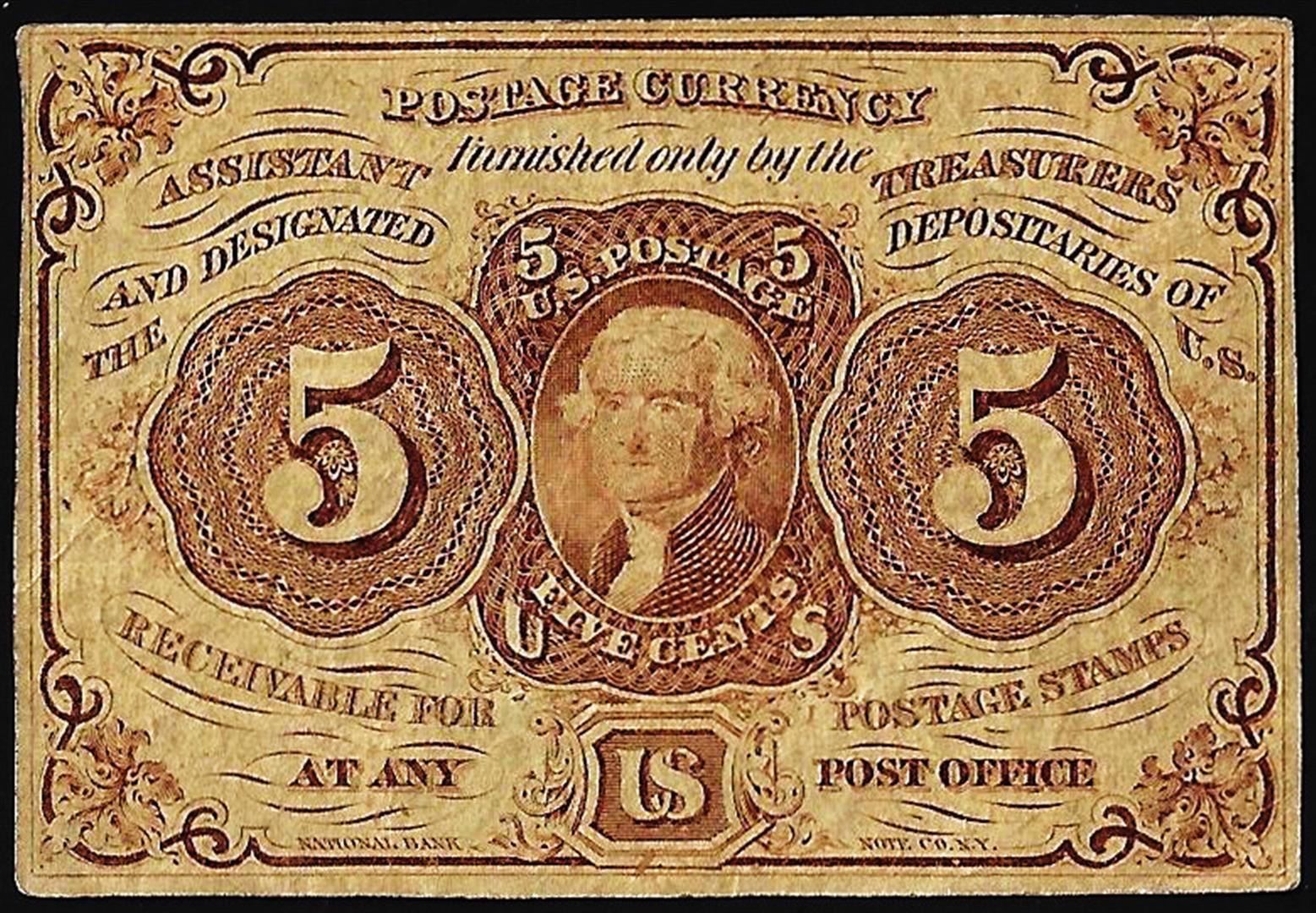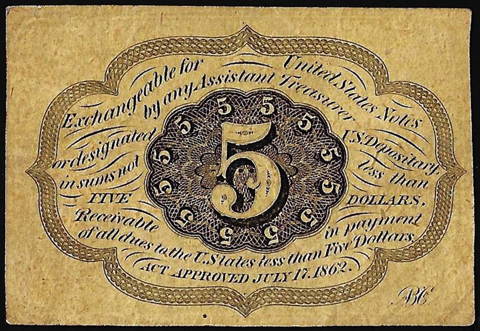 One July 17, 1862 First Issue Five Cents Fractional Currency Note.