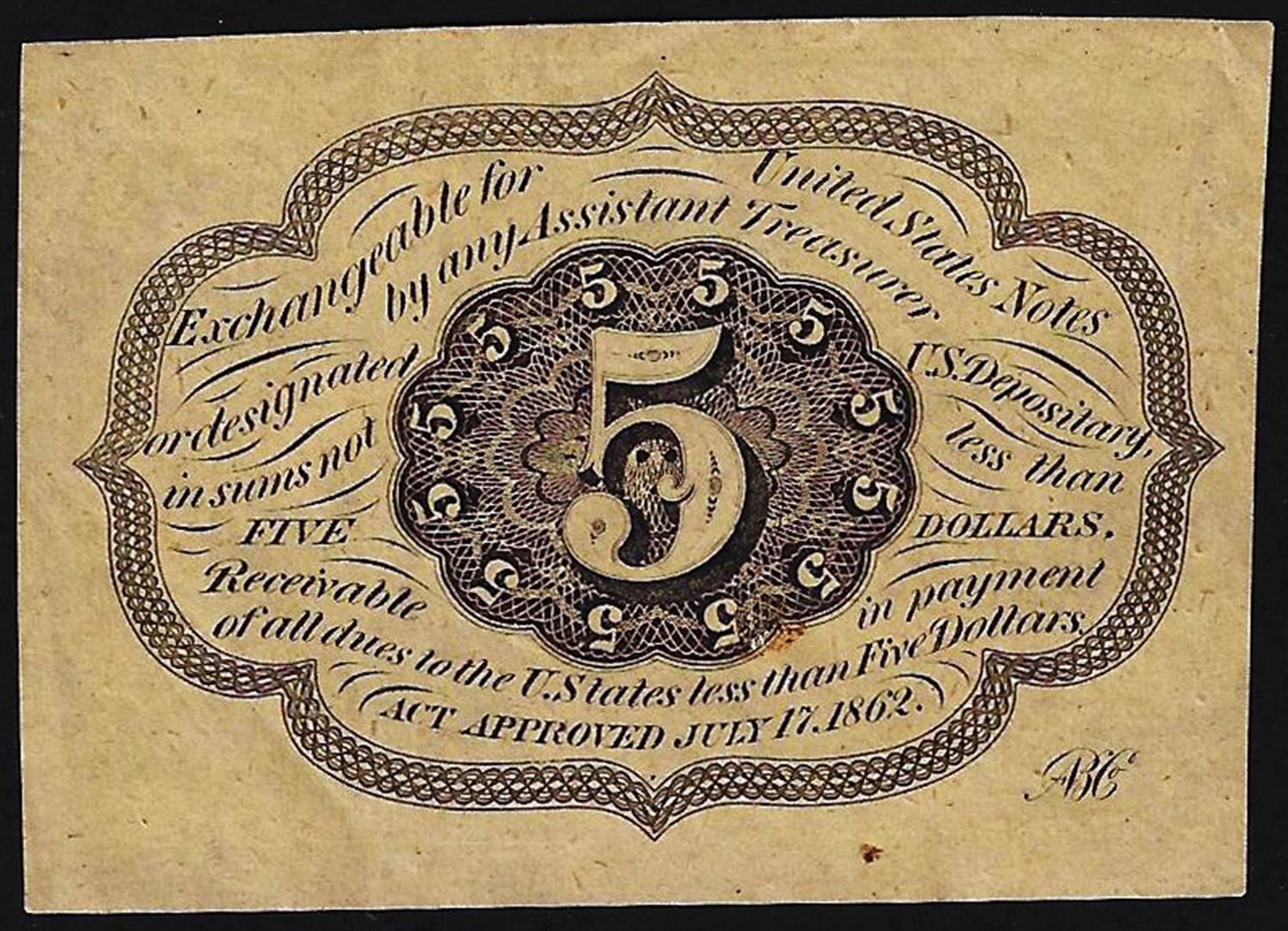 July 17, 1862 Five Cents First Issue Fractional Currency Note