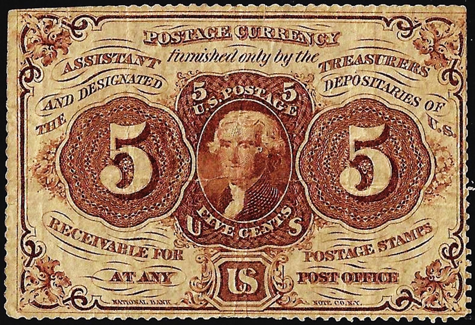 One July 17, 1862 Five Cents Perforated Edges First Issue Fractional Currency Note.