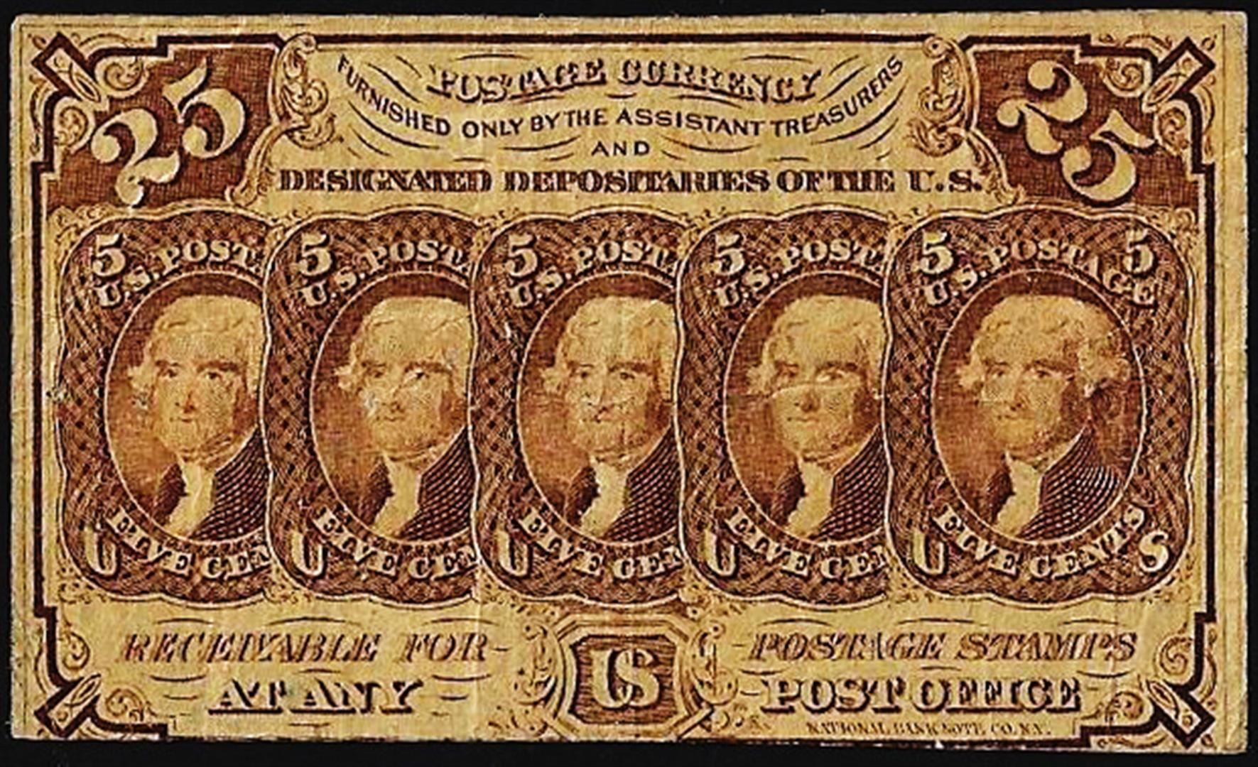 One July 17, 1862 Twenty-Five Cent First Issue Fractional Currency Note.