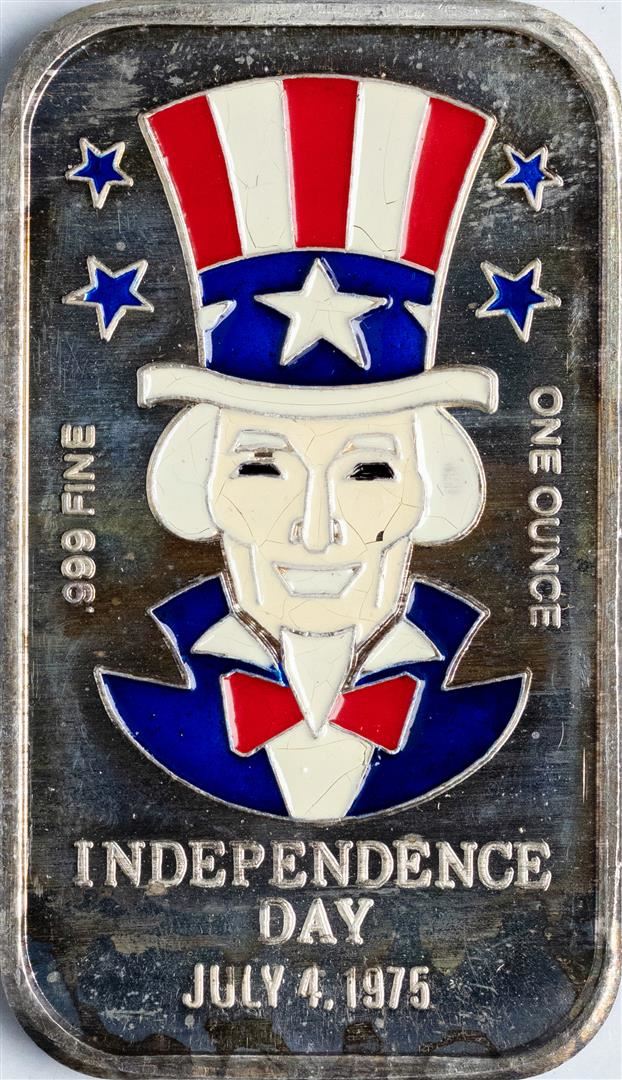One July 4, 1975 Independence Day Enamel Silver Art Bar.
