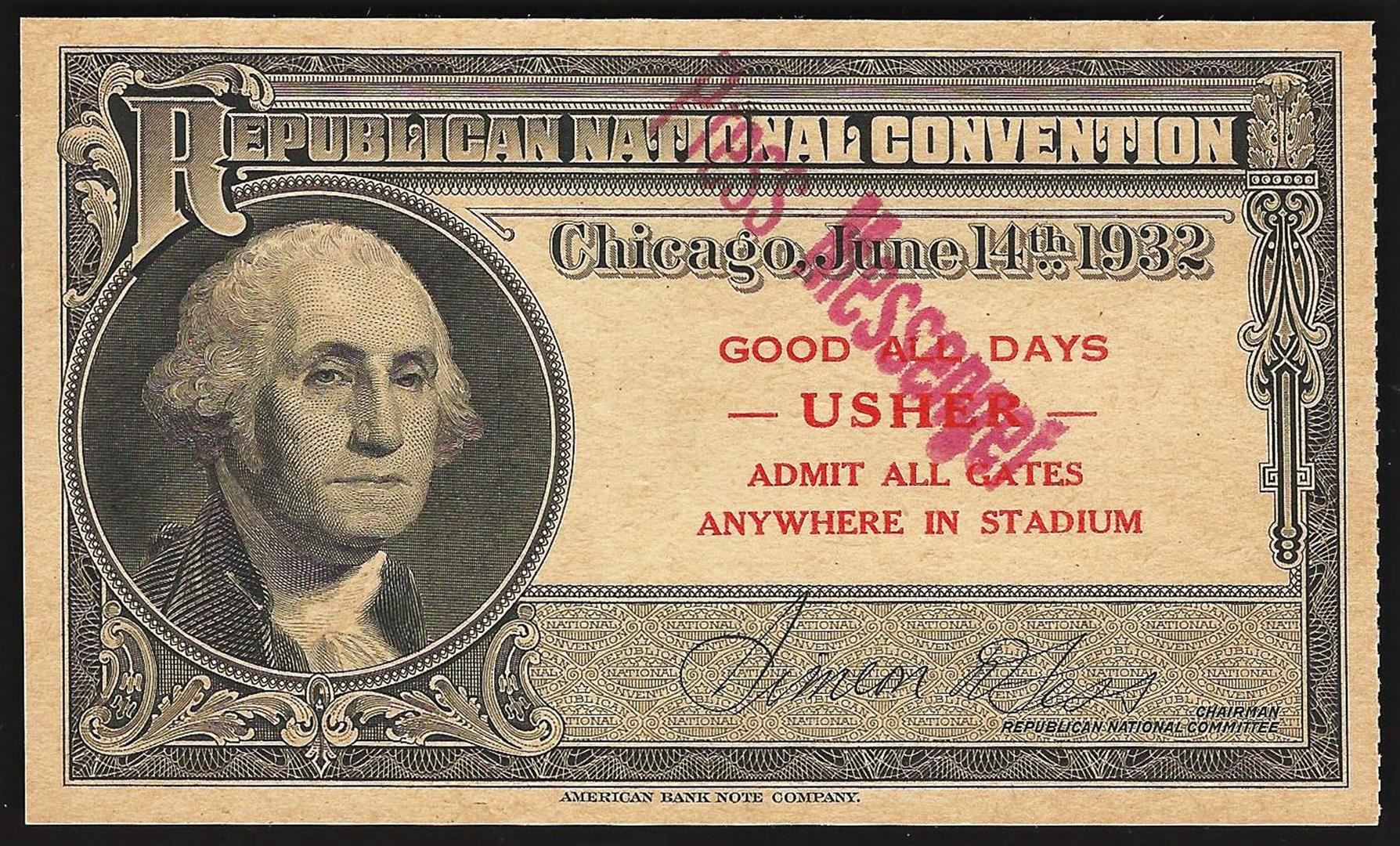 One June 14th 1932 Republican National Convention Chicago Ticket.