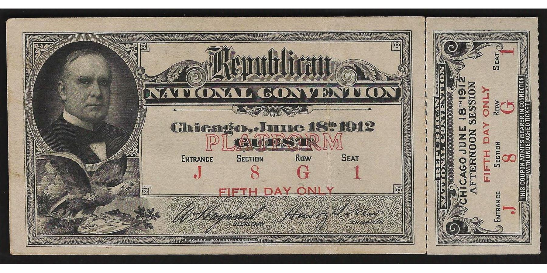 One June 18th 1912 Republican National Convention Chicago Ticket.