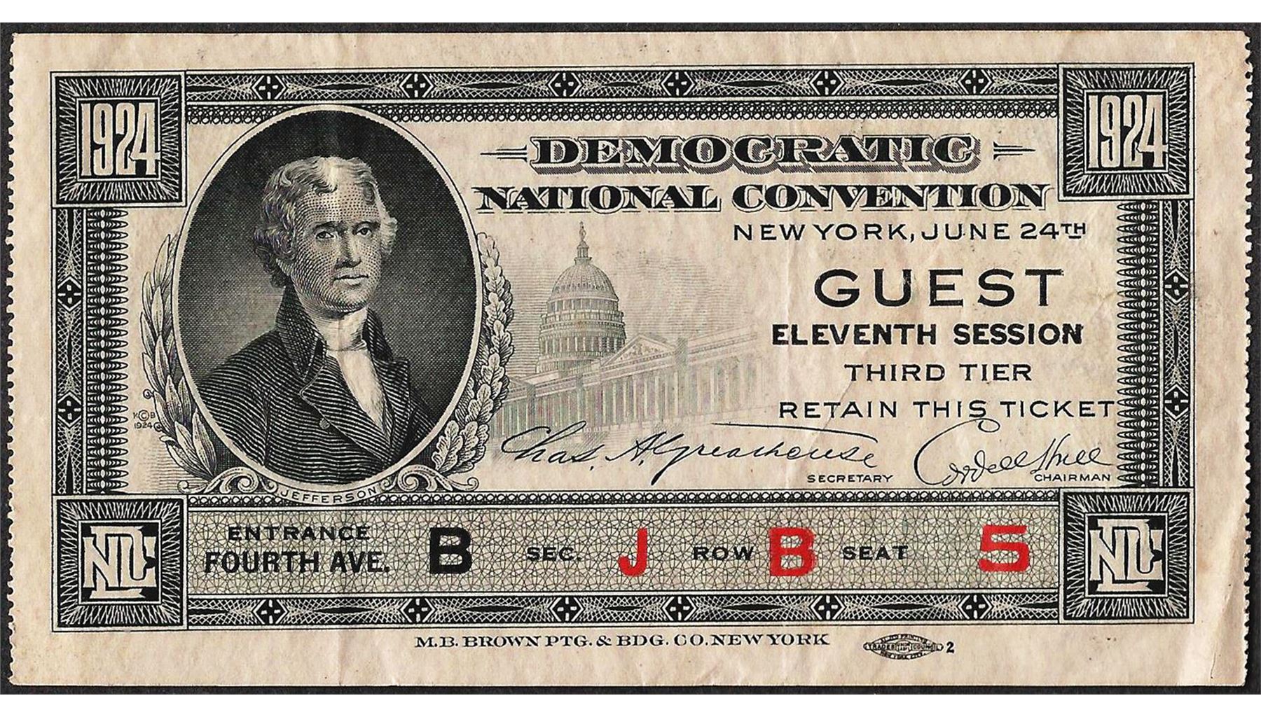 June 24, 1924 Democratic National Convention New York Ticket