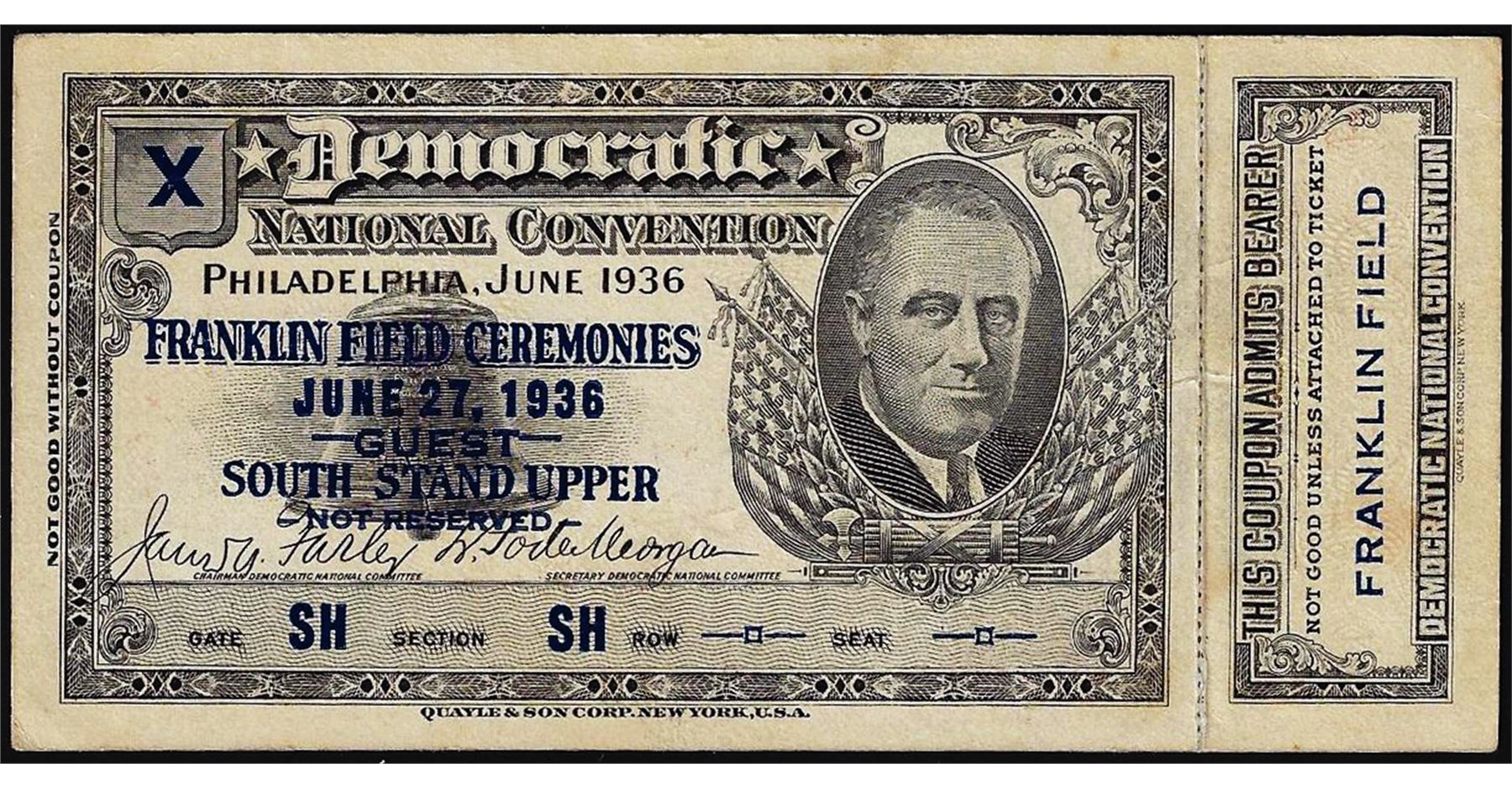 June 27, 1936 Democratic National Convention Ticket Franklin Field w/ Stub