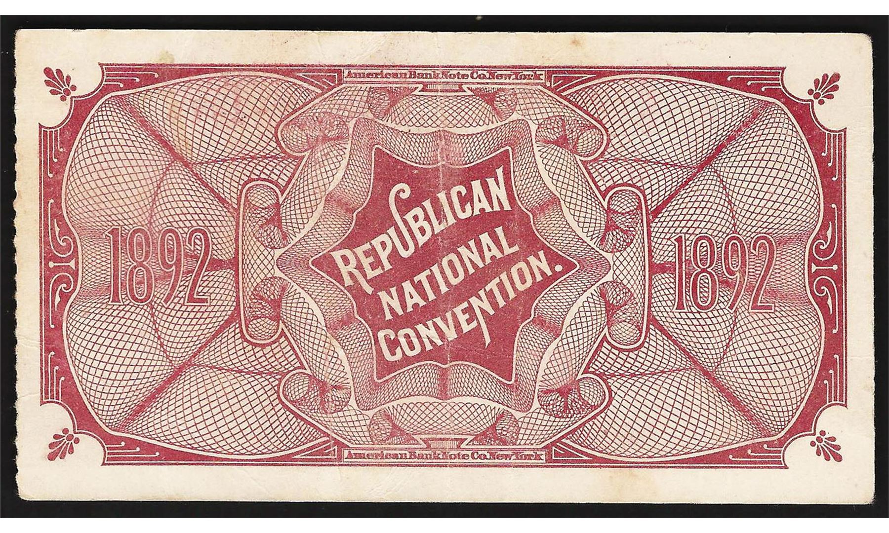 One June 7th 1892 Republican National Convention Minneapolis Ticket.