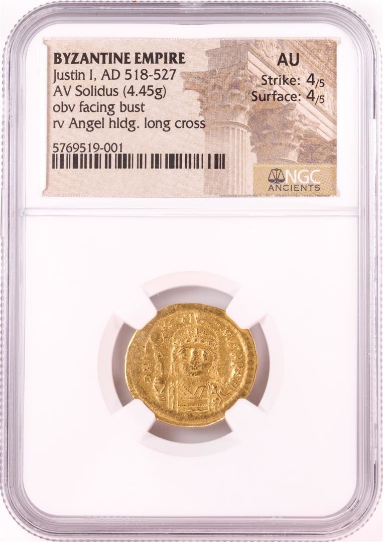 Justin I, 518-527 AD Byzantine Empire Solidus Gold Coin NGC AU