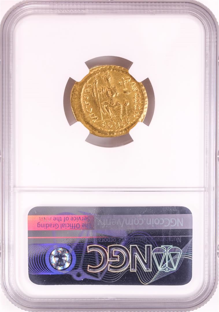 One Justin I, 518-527 AD Byzantine Empire Solidus Gold Coin NGC AU. NGC Certified.