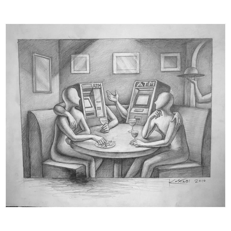 "Easy Credit" is an original artwork, pencil on paper, by Mark Kostabi. The piece is hand signed and comes with a certificate of authenticity. Measures approximately12" x 15".