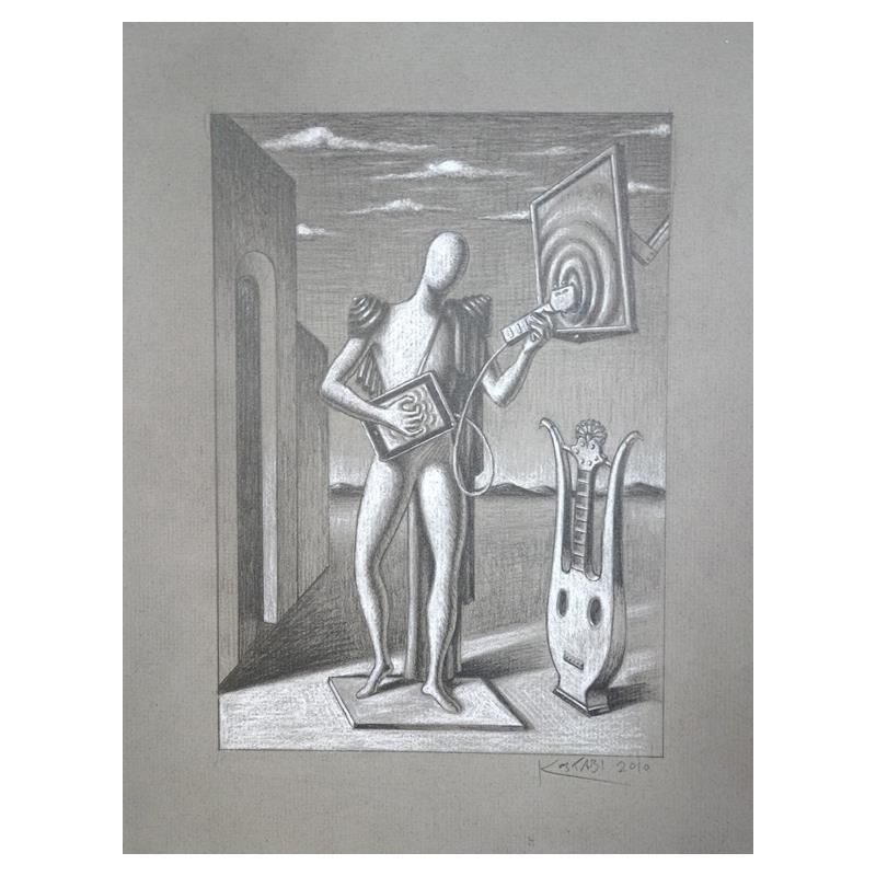 "Other Music" is an original artwork, pencil on paper, by Mark Kostabi. The piece is hand signed and comes with a certificate of authenticity. Measures approximately12.5" x 9.5".