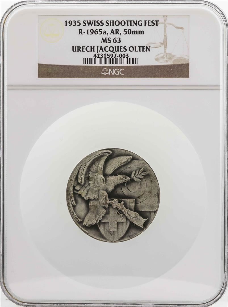 One Large 1935 Swiss Shooting Fest Urech Hacques Olten 50mm Medal NGC MS63. NGC Certified.