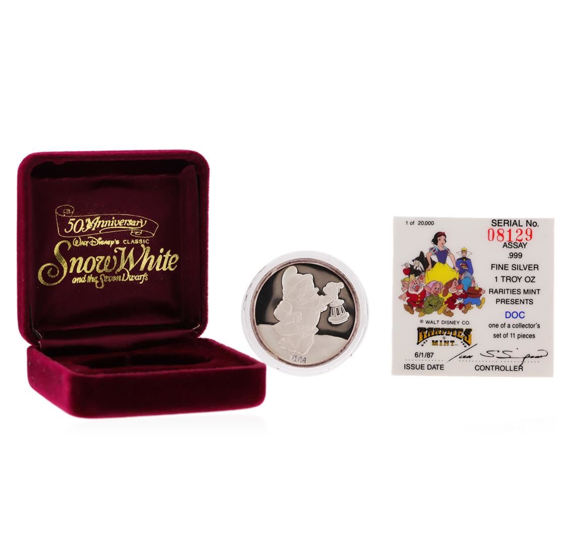 One Limited Edition Walt Disney Co. Rarities Mint Snow White "DOC" 1 OZ Silver Coin.