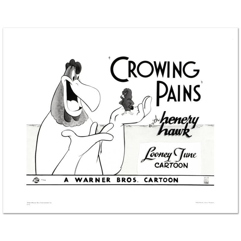 "Crowing Pains #2 (with Foghorn)" is a limited edition giclee on paper from Warner Bros., numbered with hologram seal of Authenticity. This image was originally used as a "lobby card" displayed in theater lobbies to publicize animated shorts. Also, includes Certificate of Authenticity! Measures approx. 20" x 16" (with border), 16" x 12" (image).