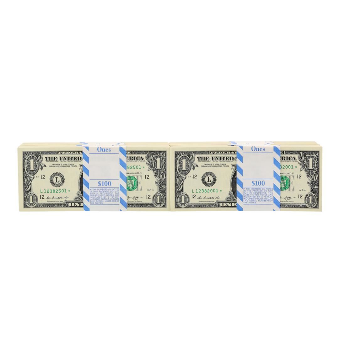 Lot of (1,000) Consecutive 2013 $1 Federal Reserve STAR Notes - 10 Packs