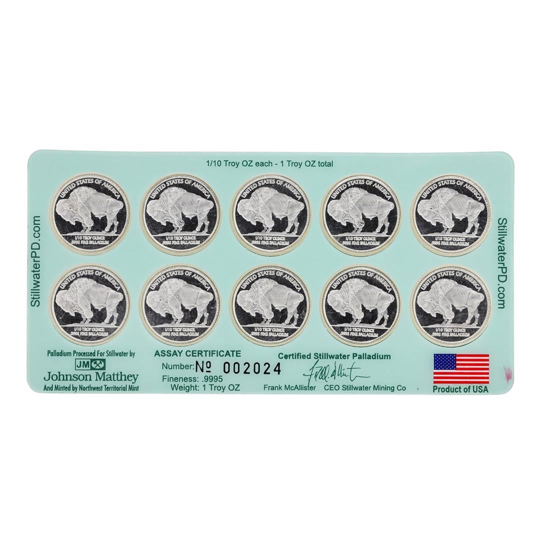 One Lot of (10) 1/10 oz. 2004 Stillwater Johnson Matthey Palladium Coins.