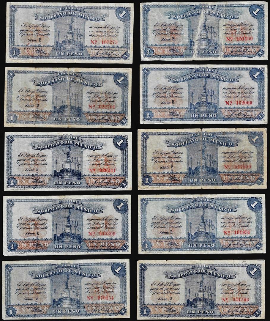 One Lot of (10) 1915 Mexico Revolutionary Notes.