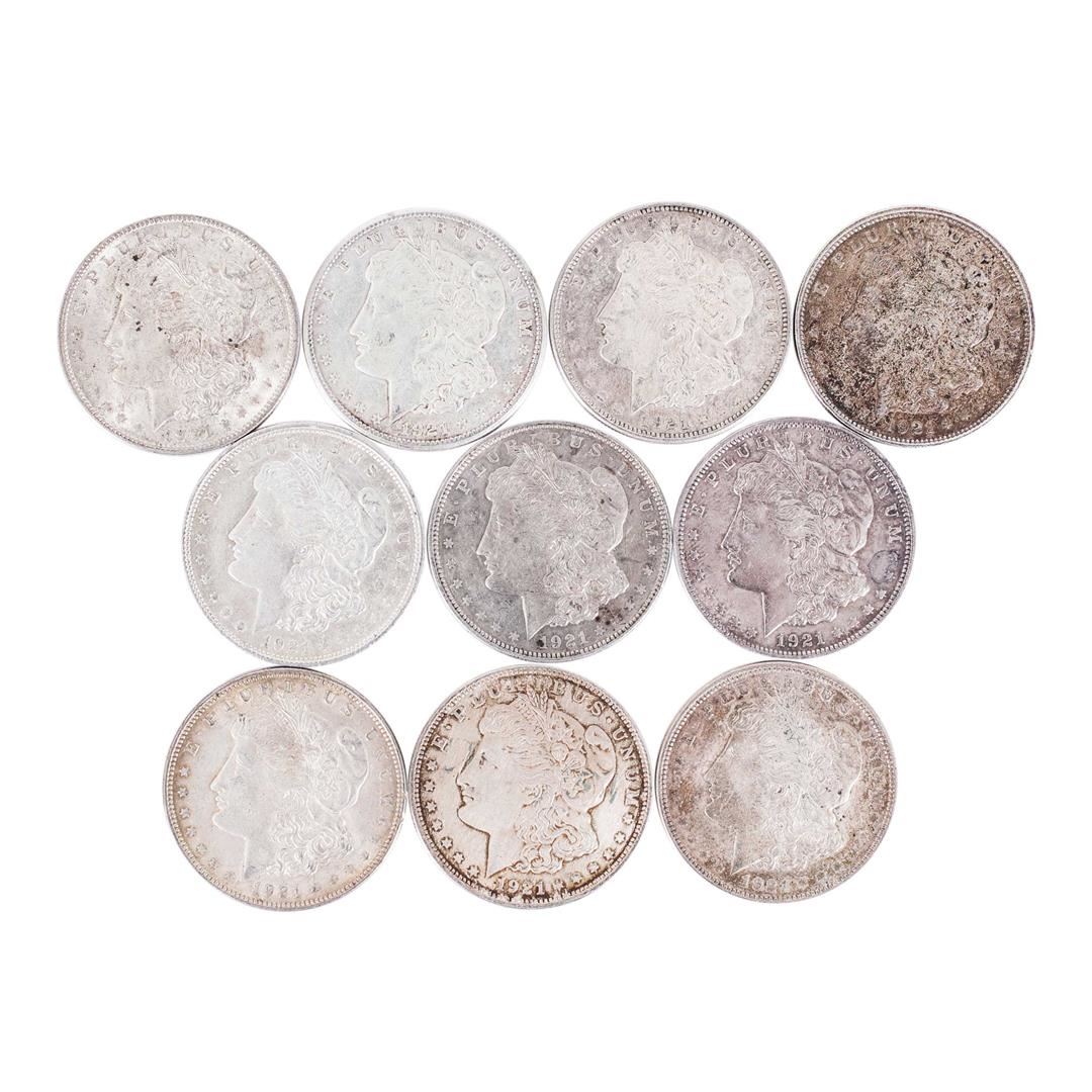 One Lot of (10) 1921 $1 Morgan Silver Dollar Coins.