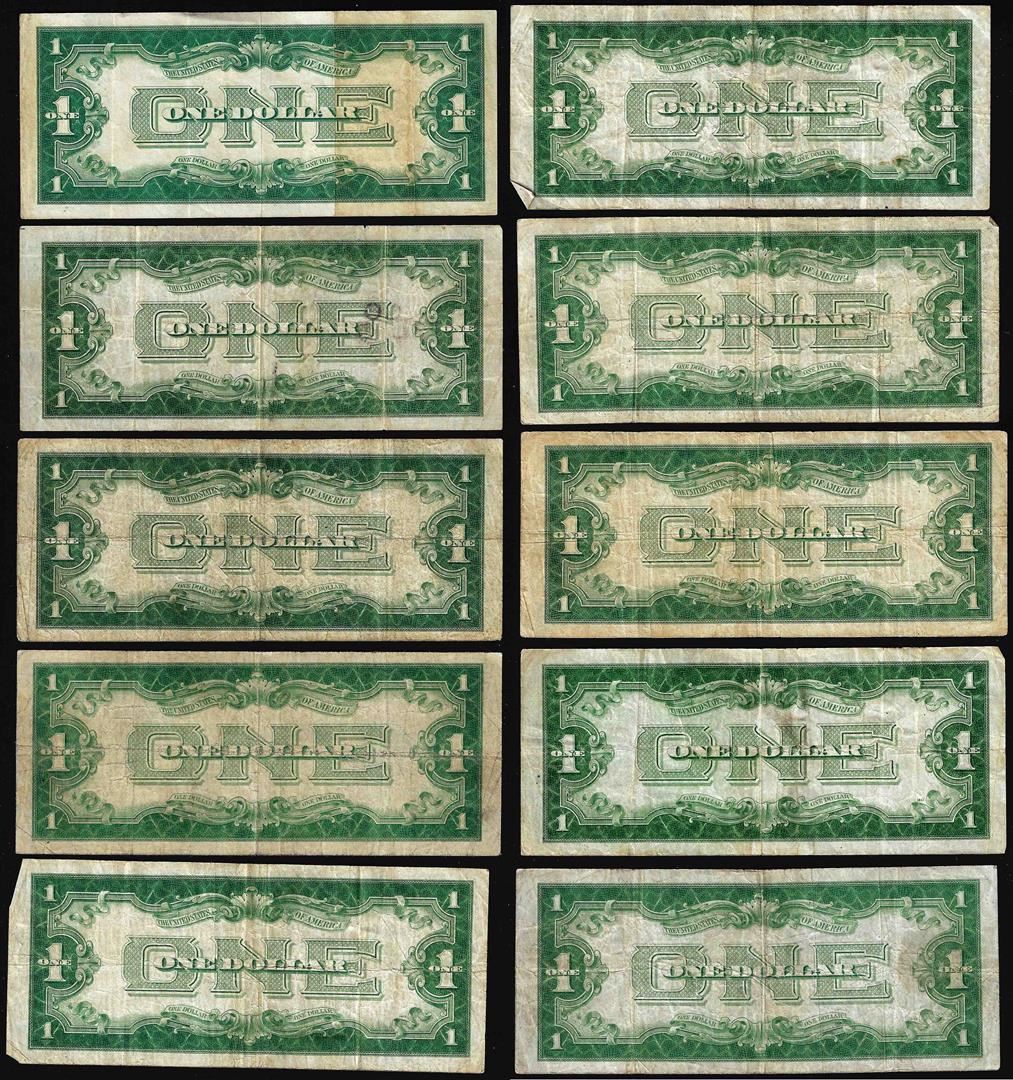 One Lot of (10) 1928 $1 Funnyback Silver Certificate Notes.
