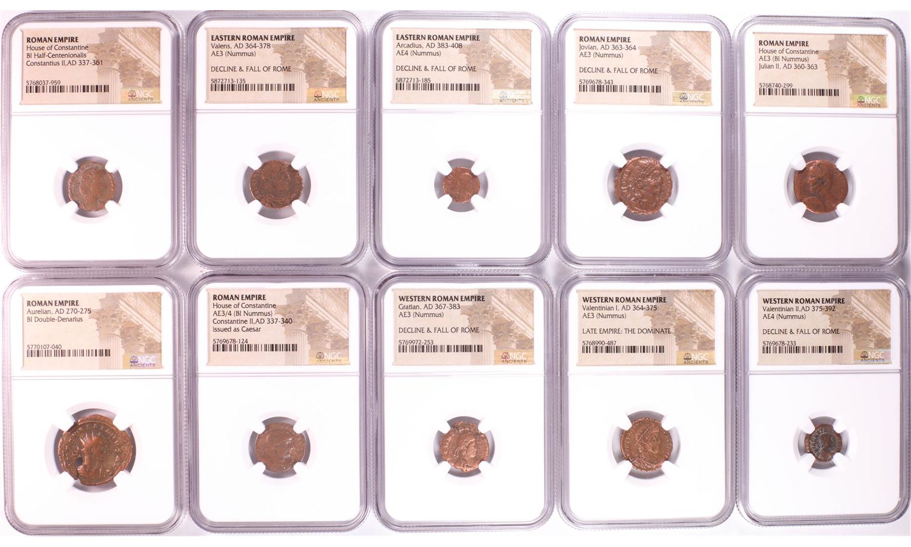 One Lot of (10) Ancient Roman Empire Coins NGC Certified. NGC Certified.