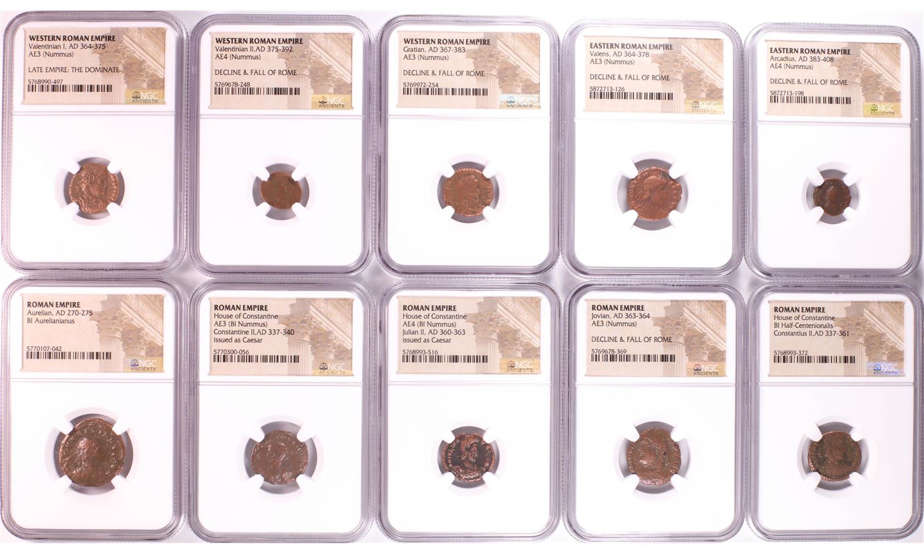 One Lot of (10) Ancient Roman Empire Coins NGC Certified. NGC Certified.