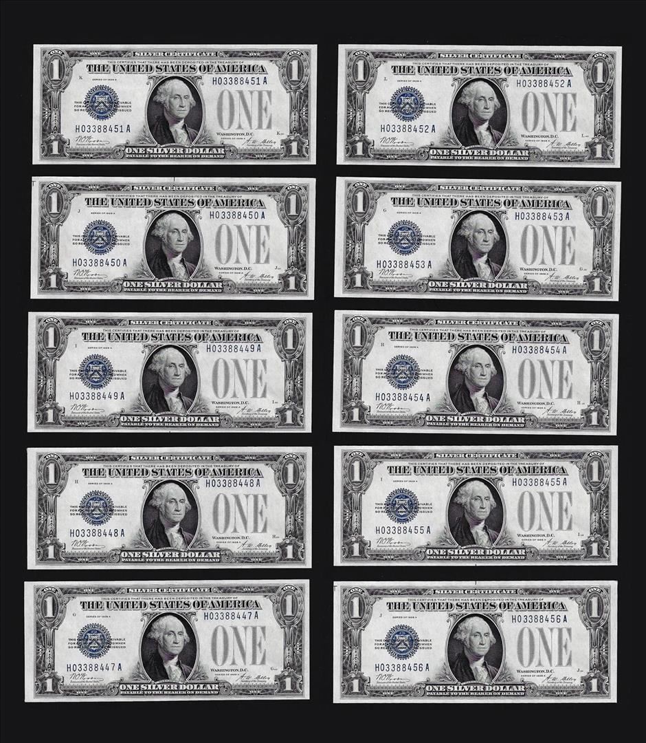 One Lot of (10) Consecutive 1928 $1 Silver Certificate Notes.