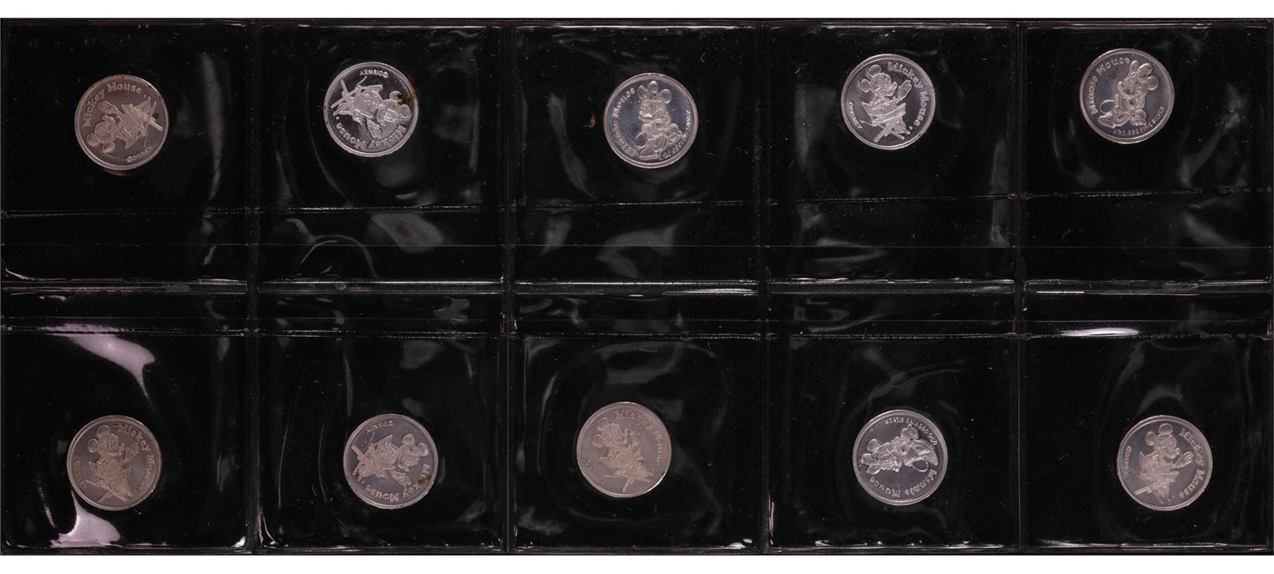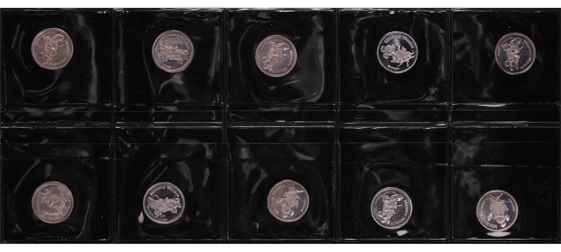 One Lot of (10) Disney Mickey & Minnie Mouse 1/20 oz. .999 Fine Silver Coin Rounds.