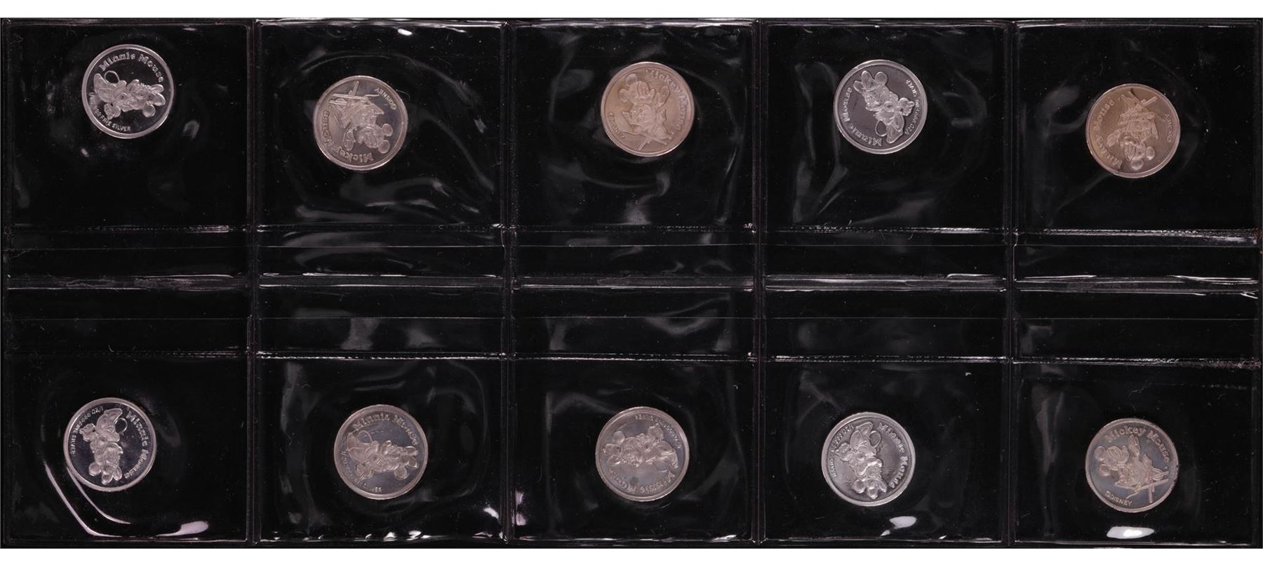 One Lot of (10) Disney Mickey & Minnie Mouse 1/20 oz. .999 Fine Silver Coin Rounds.