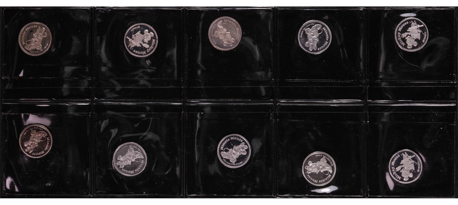 Lot of (10) Disney Mickey & Minnie Mouse 1/20 oz. .999 Fine Silver Coin Rounds