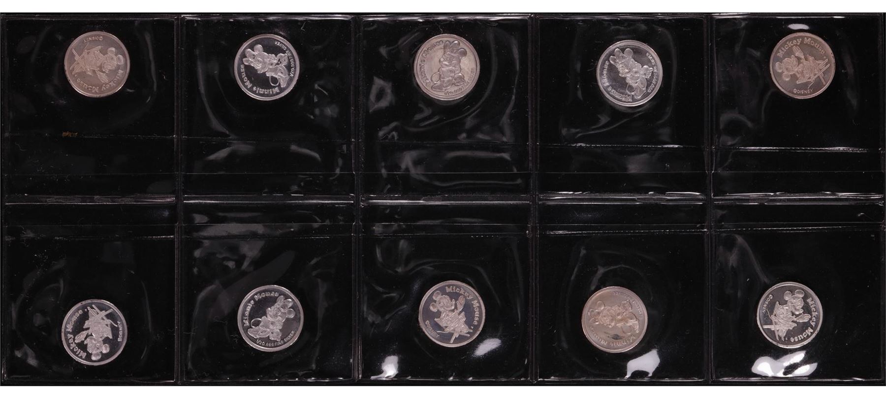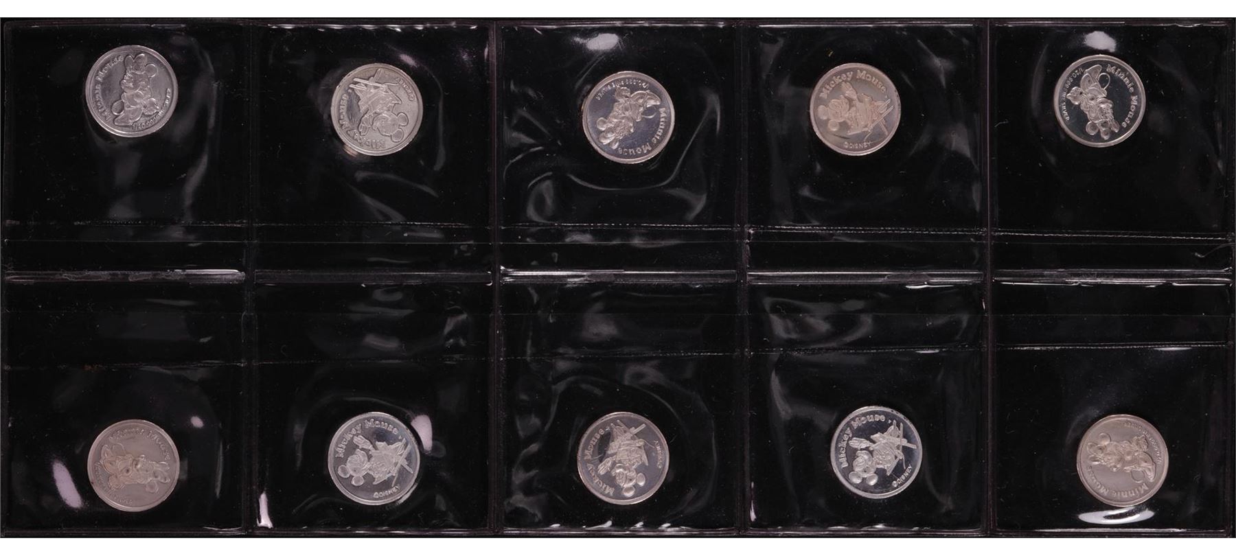 One Lot of (10) Disney Mickey & Minnie Mouse 1/20 oz. .999 Fine Silver Coin Rounds.