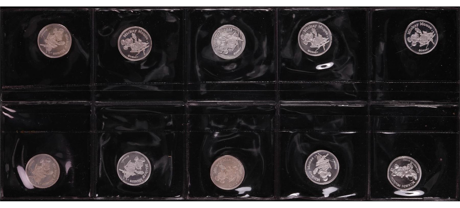 One Lot of (10) Disney Mickey & Minnie Mouse 1/20 oz. .999 Fine Silver Coin Rounds.