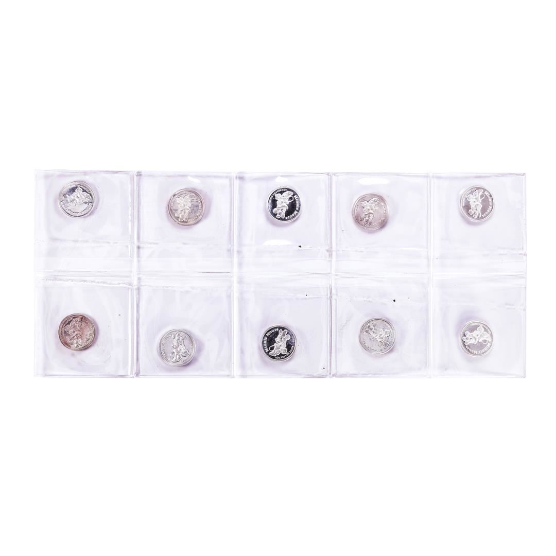 One Lot of (10) Disney Mickey & Minnie Mouse 1/20 oz. .999 Fine Silver Coin Rounds.