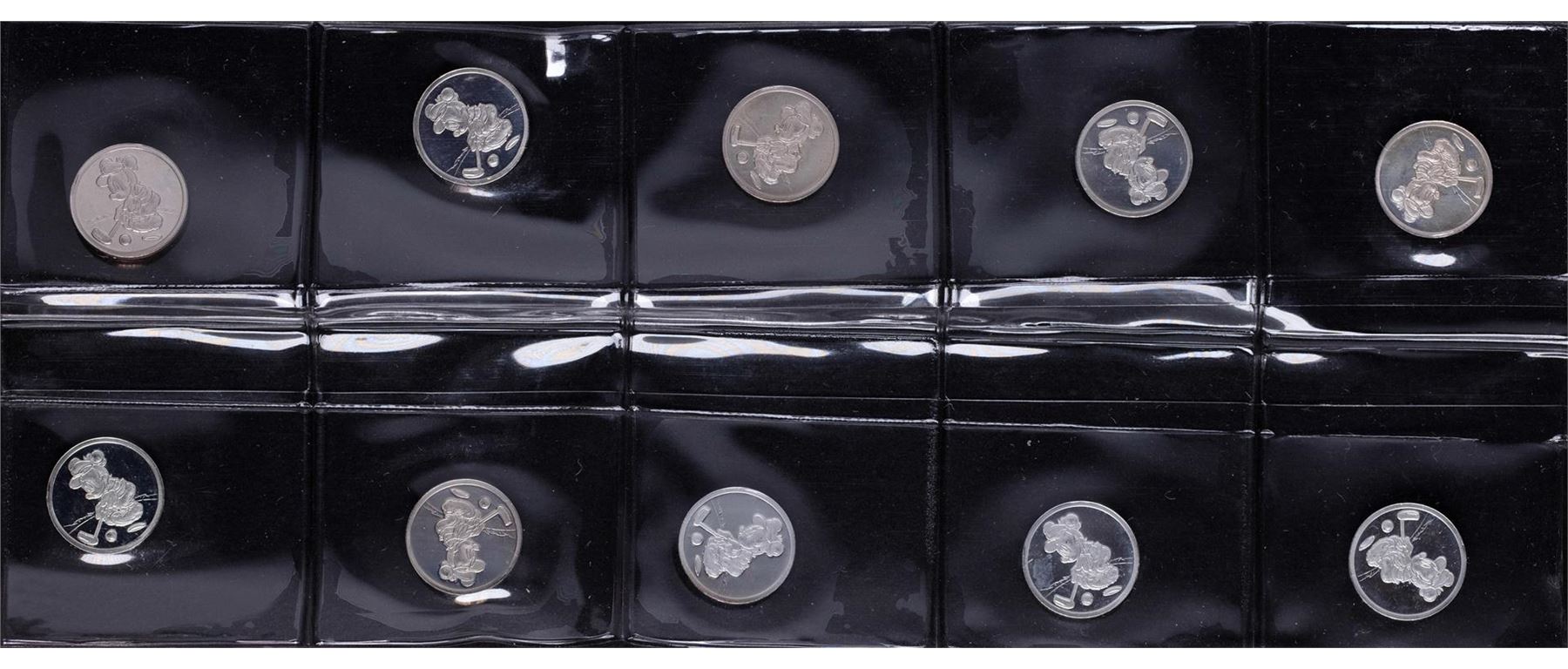 One Lot of (10) Disney Mickey & Minnie Mouse Golfer 1/20 oz. .999 Fine Silver Coin Rounds.